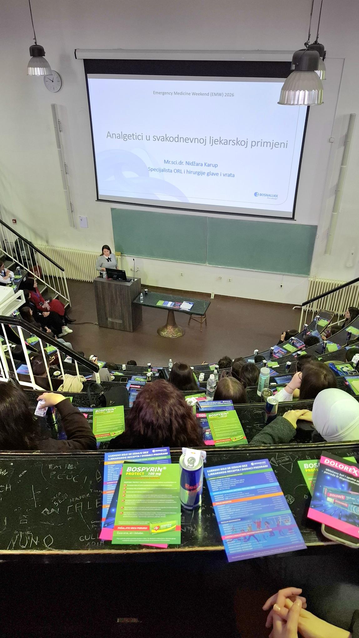 Tom prilikom u amfiteatru "Akademik Hajrudin Hadžiselimović” dr Nidžara Karup, specijalistica ORL i hirurgije glave i vrata (Opća bolnica "Prim. dr Abdulah Nakaš”, Sarajevo), održala je predavanje o temi "Analgetici u svakodnevnoj ljekarskoj primjeni” i predstavila principe moderne analgezije u praksi te mjesto i ulogu modernih analgetika iz Bosnalijekovog portfolija.