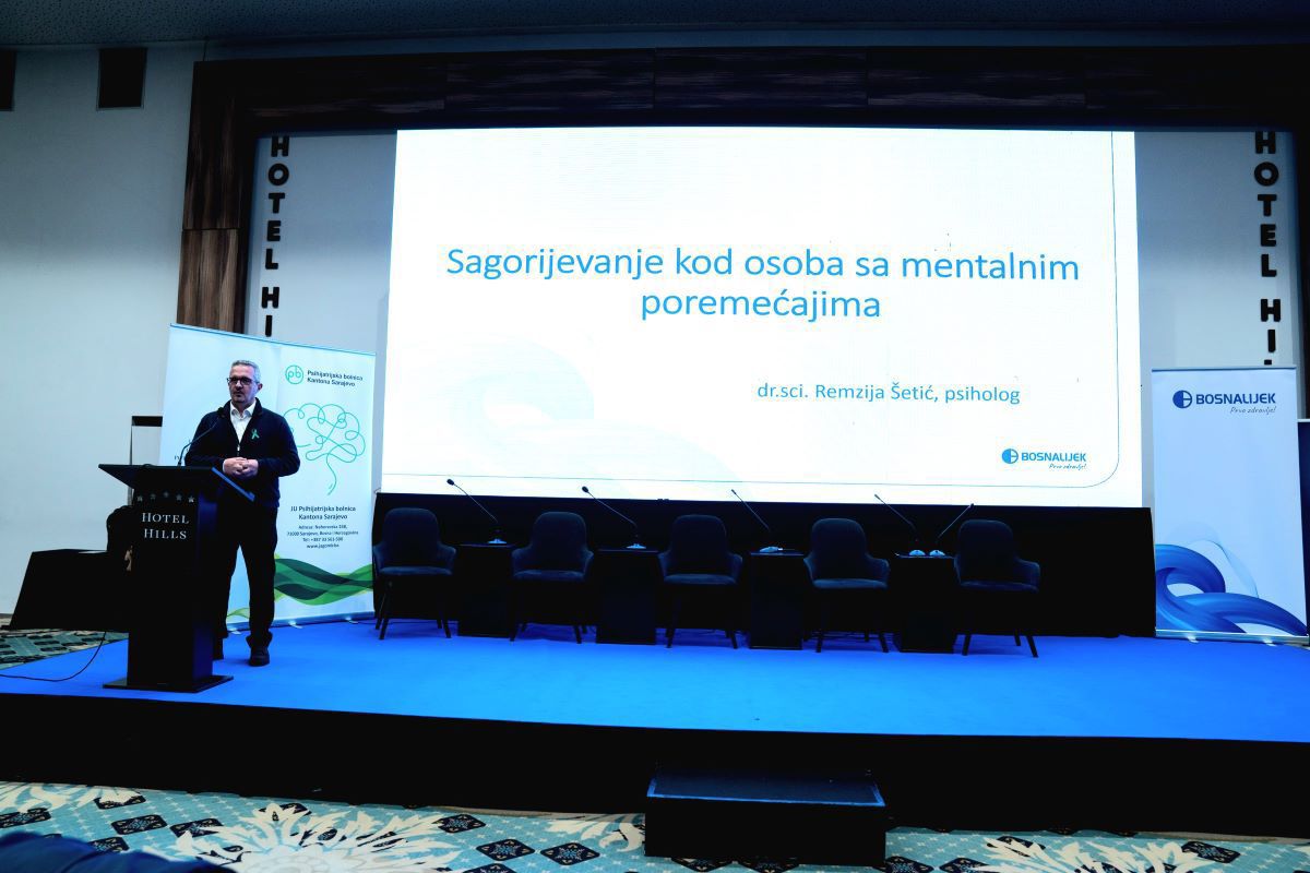 Simpozij je otvoren plenarnim predavanjem kompanije Bosnalijek na temu „Sagorijevanje kod osoba s mentalnim poremećajima”. O fenomenu sagorijevanja, prevenciji i tretmanu sagorijevanja kod osoba s mentalnim oboljenjima, koje zahtijevaju integrisan i multidisciplinaran pristup, govorila je dr sci. Remzija Šetić, psiholog.